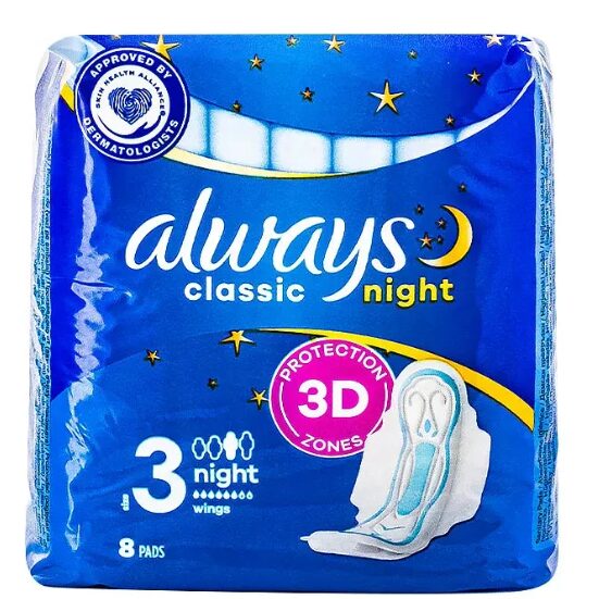 Absorbante Classic Night, Always, Bumbac, 8 buc