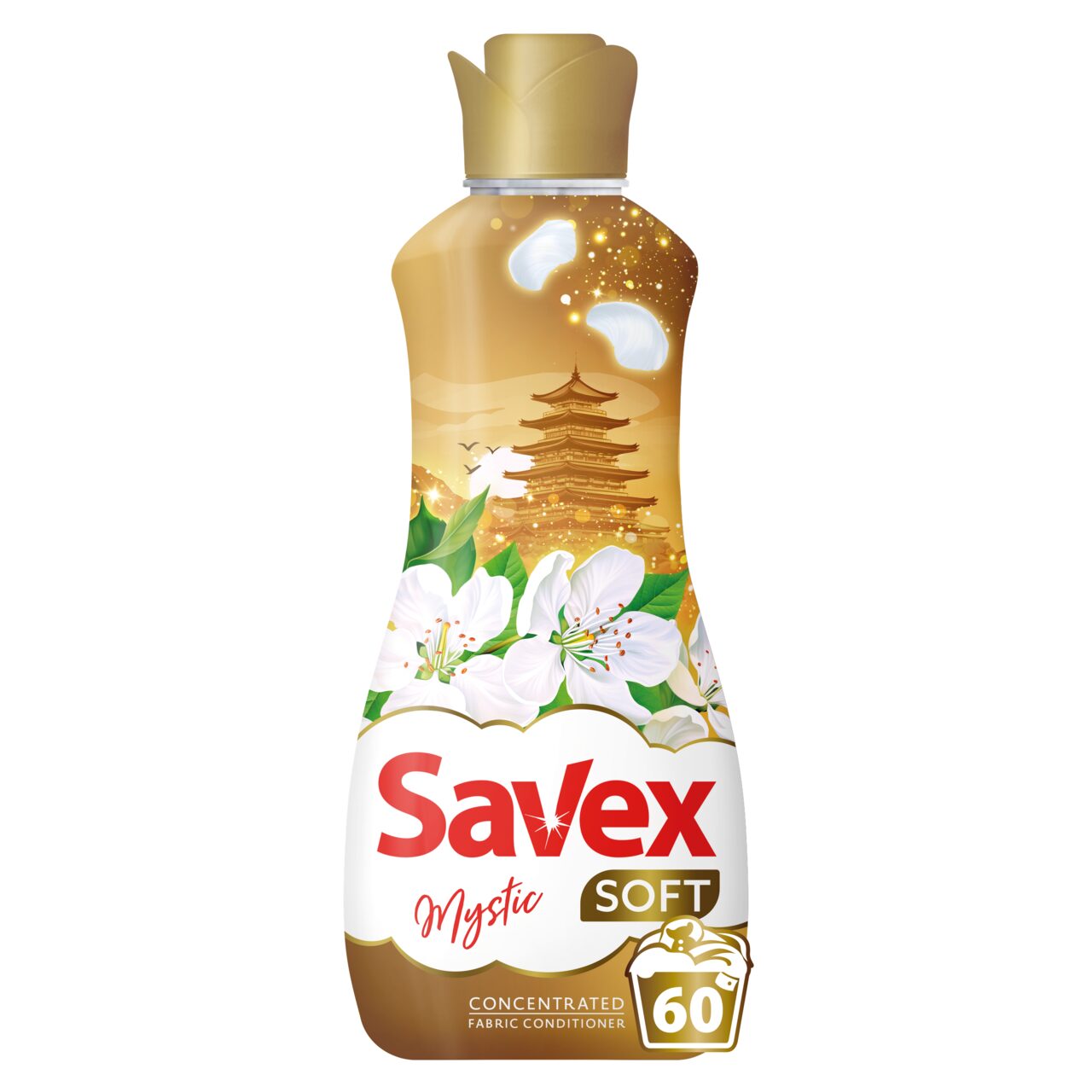 Balsamul concentrat Savex Soft Mystic ofera rufelor tale o catifelare delicata si un parfum proaspat, luminos, ce persista timp indelungat. Formula sa avansata protejeaza fibrele tesaturilor, reduce electrizarea si face hainele mai usor de calcat. Potrivit pentru toate tipurile de lenjerie, acest balsam lichid transforma fiecare spalare intr-o experienta placuta, lasand hainele moi si pline de prospetime. Datorita concentratiei sale eficiente, asigura rezultate excelente pentru un numar mare de spalari.