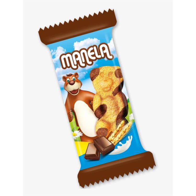 Bucură‑te de Manela Cake Bear, o prăjitură dulce tip sponge cake de 50 g, perfectă ca gustare sau desert.