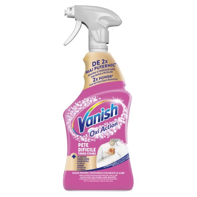 Vanish Oxi Action Gold Spray este o soluție eficientă pentru îndepărtarea rapidă a petelor dificile de pe hainele albe și colorate. Formula sa cu oxigen activ și agenți speciali acționează direct asupra murdăriei, eliminând urmele de grăsime, mâncare sau băuturi înainte de spălare. Flaconul de 454 ml cu aplicator spray permite pre-tratarea rapidă a petelor, făcând curățarea rufelor mai simplă și mai eficientă.